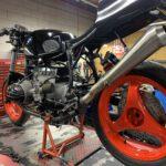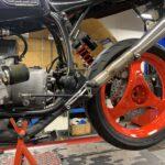 Deze BMW CafeRacer op basis van een R80RT, 1984 rijwielgedeelte met een R100RS blok is onze Show-Off bike. Doel van dit project is om klanten te laten zien wat er mogelijk is met verschillende aftermarket parts en custom made parts. Onze doelstelling met het verbouwen van een standaard motor in bijvoorbeeld een Cafe-Racer of een Scrambler is dat het uiterlijk net zo belangrijk is als de praktische zaken zoals het meenemen van bagage of dat je bij de eerste de beste regenbui tot aan je oksel nat bent. Ook het remmen, sturen en veren vinden wij heel belangrijk. Uiteraard gaan de wensen van de klant voor mits de veiligheid niet in gevaar komt.